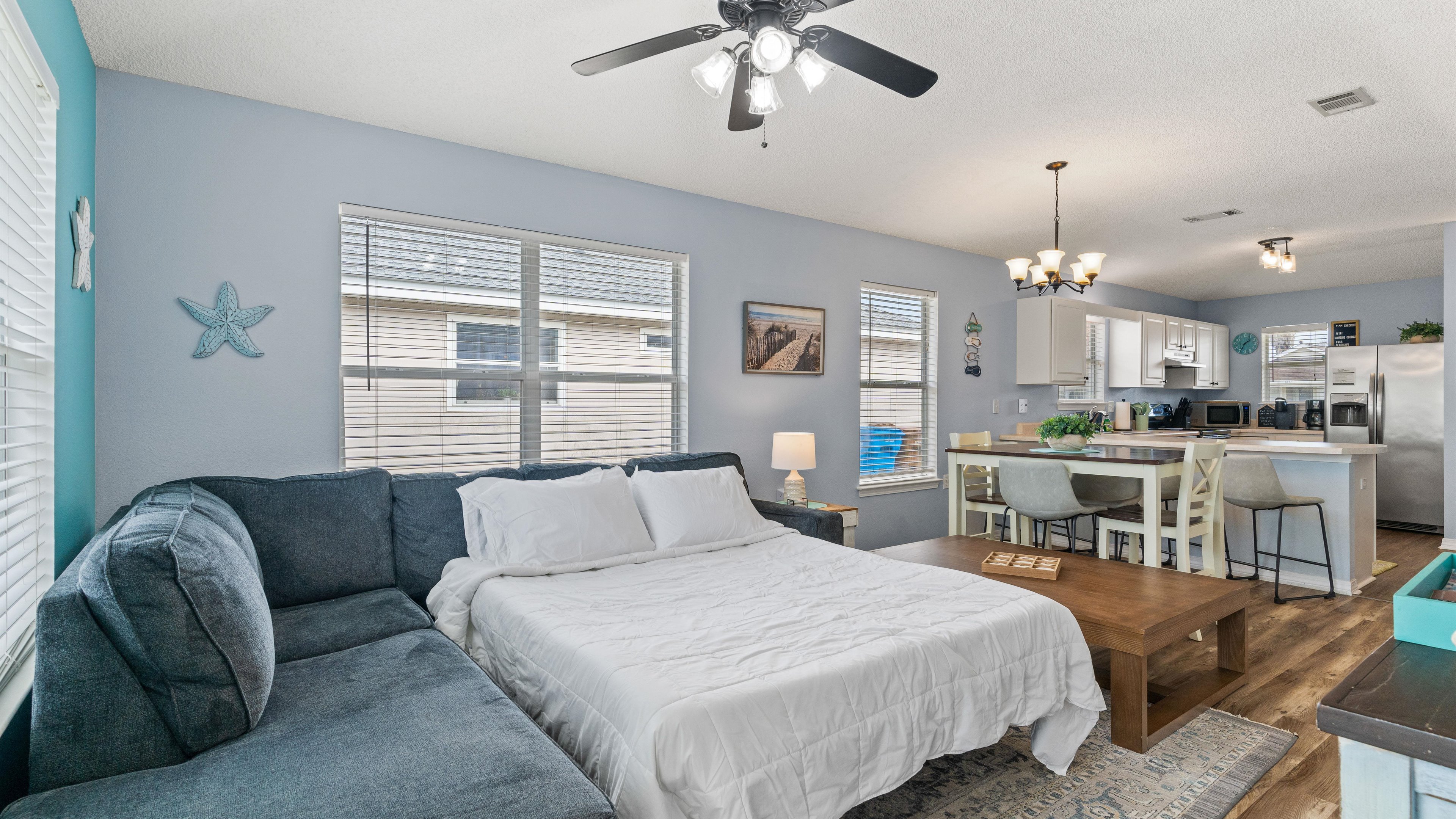 Unwind in Gulf Breeze at this adorable house. With 3 bedrooms including 2 queen beds and 1 bunk bed (2 Twin). There's plenty of space for everyone. Enjoy the cozy living room with a sofa bed for extra sleeping arrangements. This peaceful retreat offers all the comforts you need such as Washer/Dryer, WIFI, TV's and Family Games. You're sure to make fantastic family memories with a stay at our place.